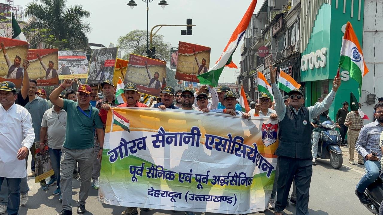 आज देहरादून के परेड ग्राउंड में अन्य सामाजिक संगठनो के साथ साथ बड़ी भारी संख्या में पूर्व सैनिक पूर्व अर्द्धसैनिक भी पहुंचे और और विरोध प्रदर्शन करते हुए मुख्यमंत्री आवास कूच किया।