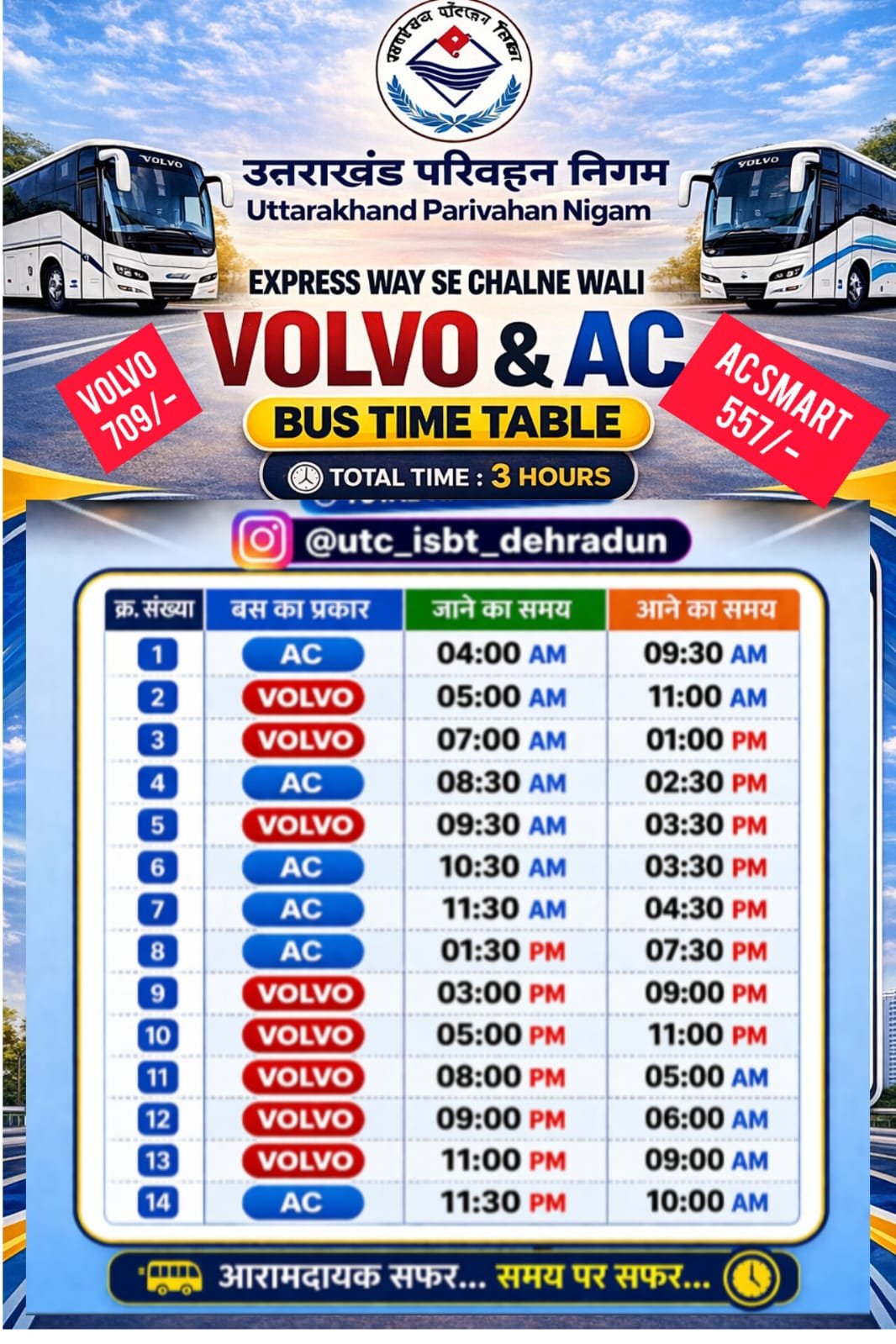 - वोल्वो बस: 945 रुपये से घटाकर 709 रुपये