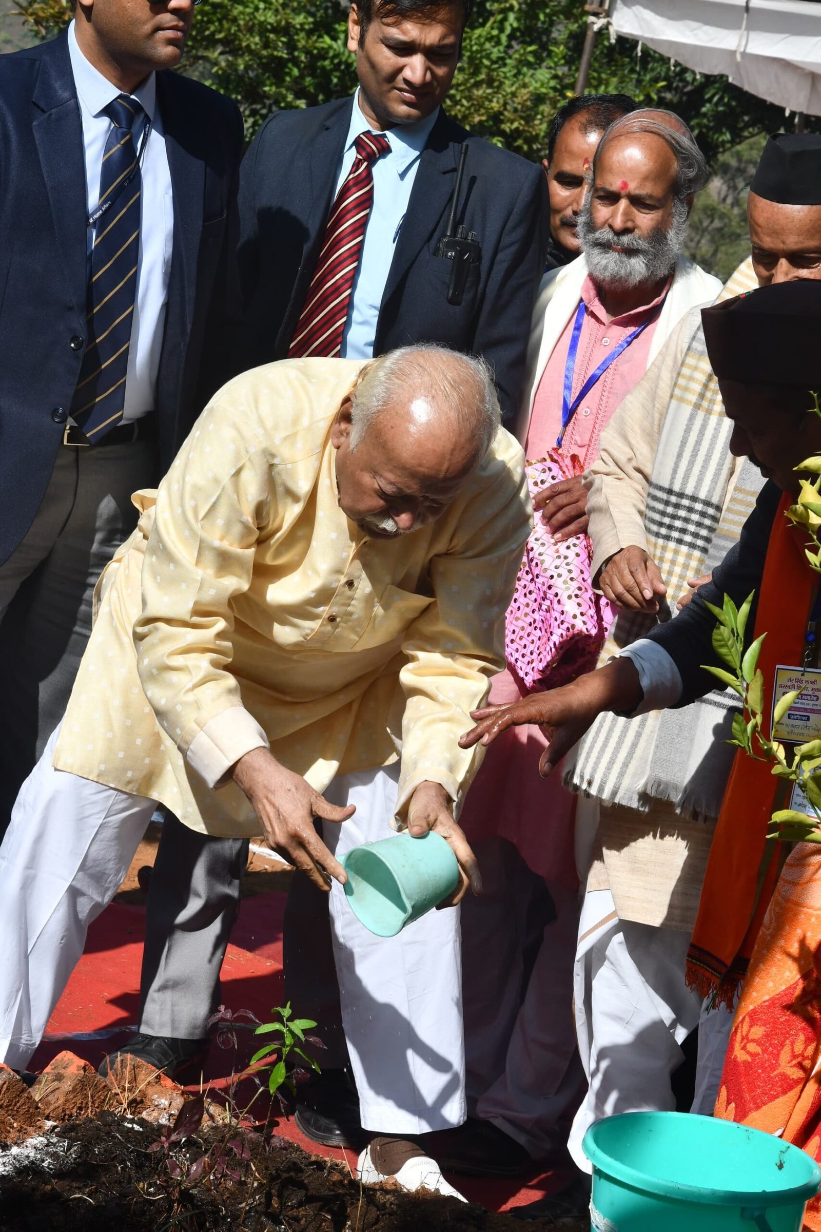 डा भागवत का विद्यालय परिसर में पूर्व राज्यपाल पूर्व मुख्यमंत्री भगत सिंह कोशियारी, विद्यालय प्रबंधन की ओर से श्याम जी अग्रवाल ने स्वागत किया। सरसंघचालक डा भागवत ने परिसर में चंदन का पौधा रोपित कर हिमालय क्षेत्र में पर्यावरण संरक्षण का संदेश दिया।