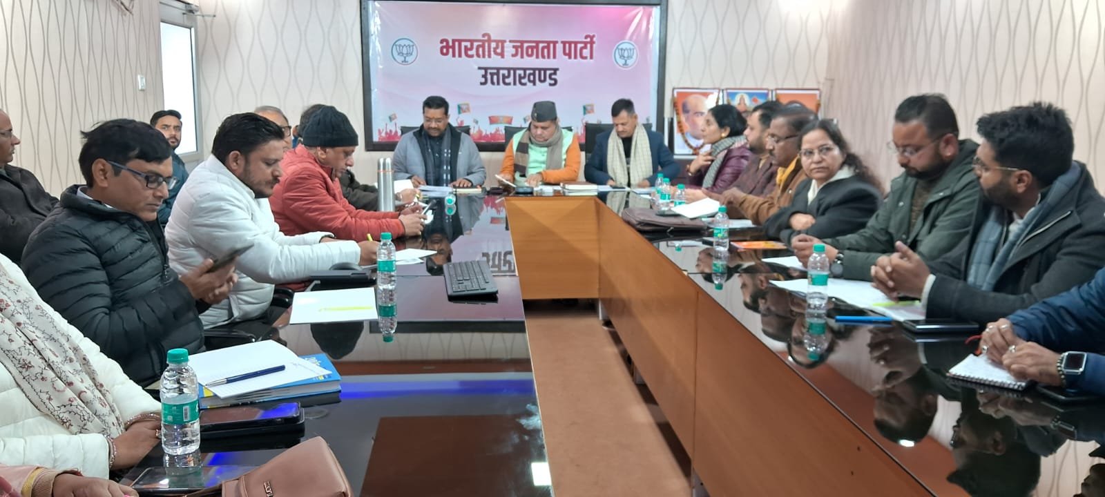 बैठक में पार्टी मुख्यालय से प्रदेश कोषाध्यक्ष पुनीत मित्तल, प्रदेश मडिया प्रभारी मनवीर चौहान, महिला मोर्चा अध्यक्ष आशा नौटियाल, डाक्टर देवेंद्र भसीन, मधु भट्ट, नवीन ठाकुर, राजेंद्र नेगी, मानिक निधि शर्मा, गीता रावत, अभिमन्यु कुमार, ओ पी कुलश्रेष्ठ, करुण दत्ता, सत्यवीर चौहान, राजेंद्र ढिल्लो, हरीश डोरा समेत वर्चुअल माध्यम से प्रदेश महामंत्री राजेंद्र बिष्ट, खिलेंद्र चौधरी, शशांक रावत प्रमुख रूप से शामिल रहे ।