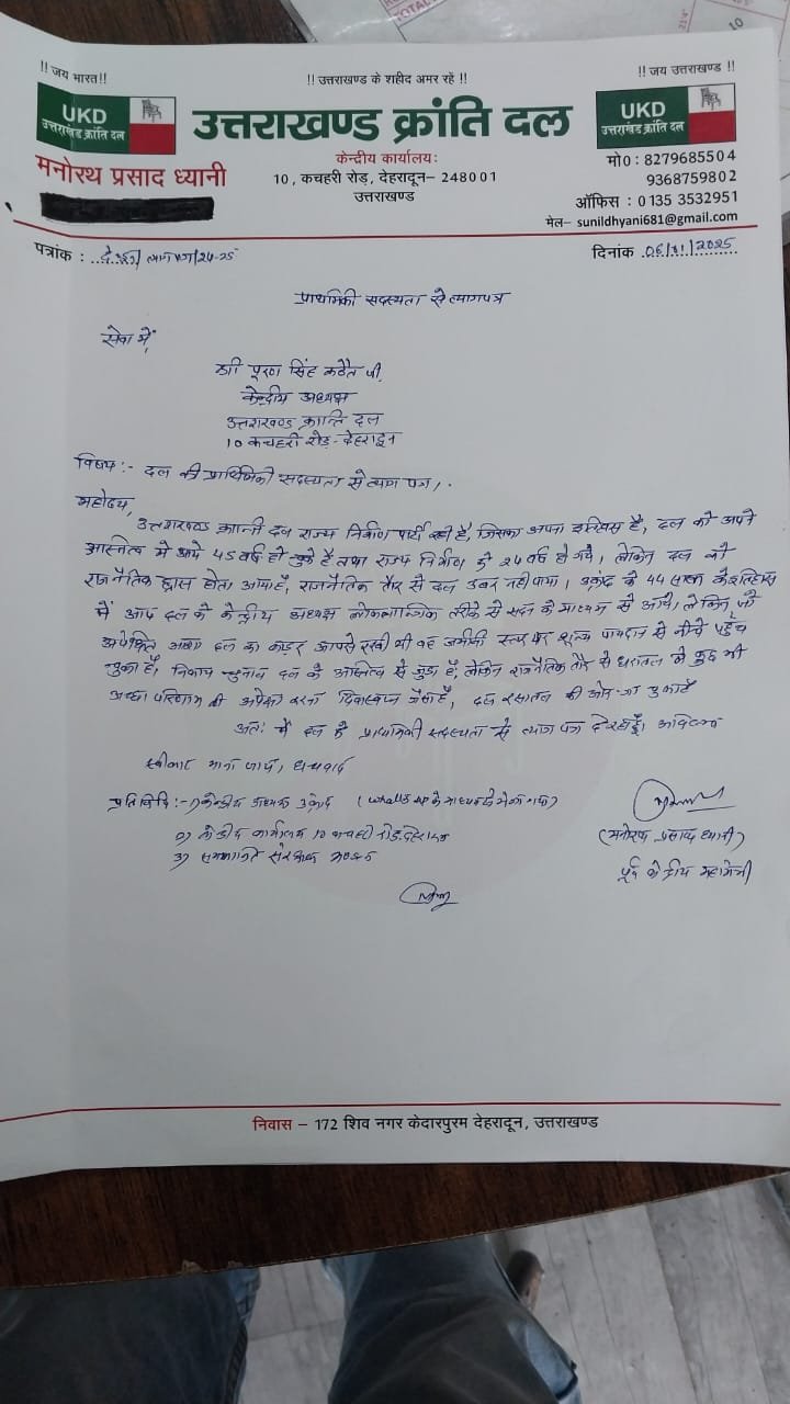 अतः मै दल की प्राथमिक सदस्यता से त्याग पत्र दें रहा हुँ।