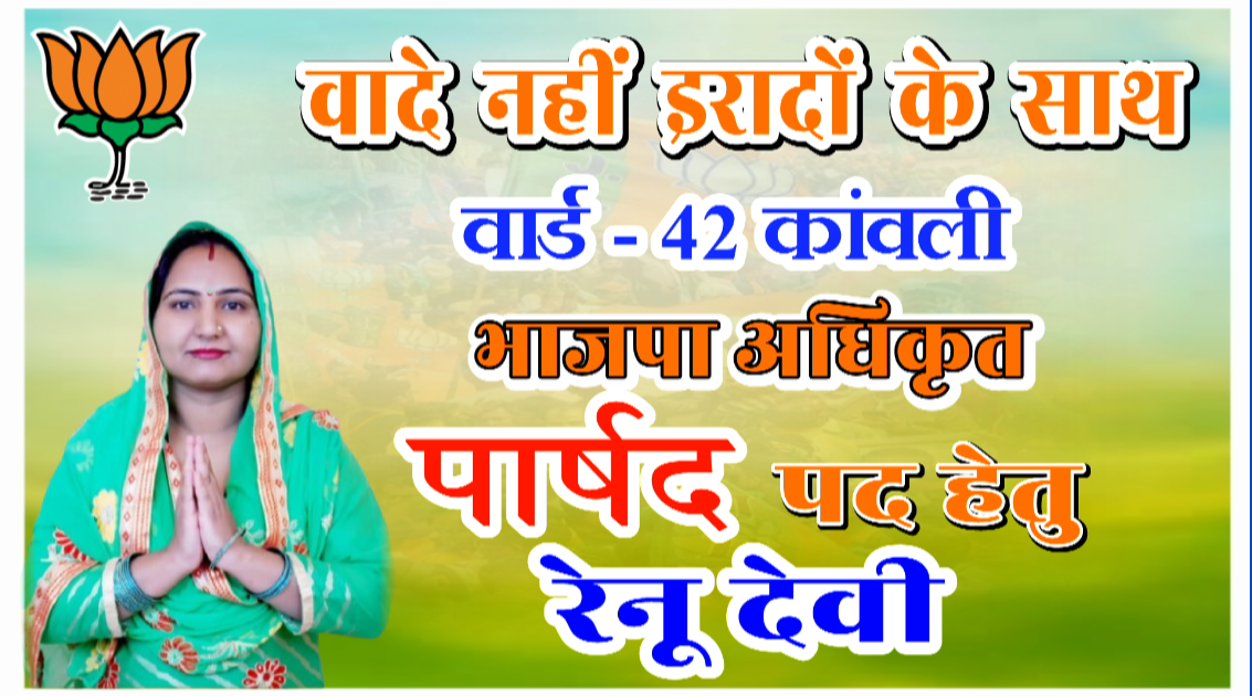 नगर निगम चुनाव जैसे जैसे नजदीक आ रहे है ऐसे में राजनैतिक सरगर्मिया तेज होती जा रही है वार्ड नंबर 42 कांवली से भाजपा अधिकृत प्रत्याशी पार्षद पद पर रेनू देवी ने कांवली में जन सम्पर्क कर बीजेपी के पक्ष में मतदान करने की अपील की ,उन्होंने कहा की पिछले पांच साल में भाजपा की पार्षद ने कई काम करवाए है जो धरातल पर दिख रहे है ,उन्होंने कहा की मेरी प्राथमिकता रहेगी की मेरा वार्ड हर समस्याओं से मुक्त रहे ,वहीँ उन्होंने बताया की बरसात के समय पर कई जगह जलभराव होने के कारण जनता को उससे रूबरू होना पड़ता है इससे निजात दिलाने के लिए वे हर संभव प्रयास करेंगी,