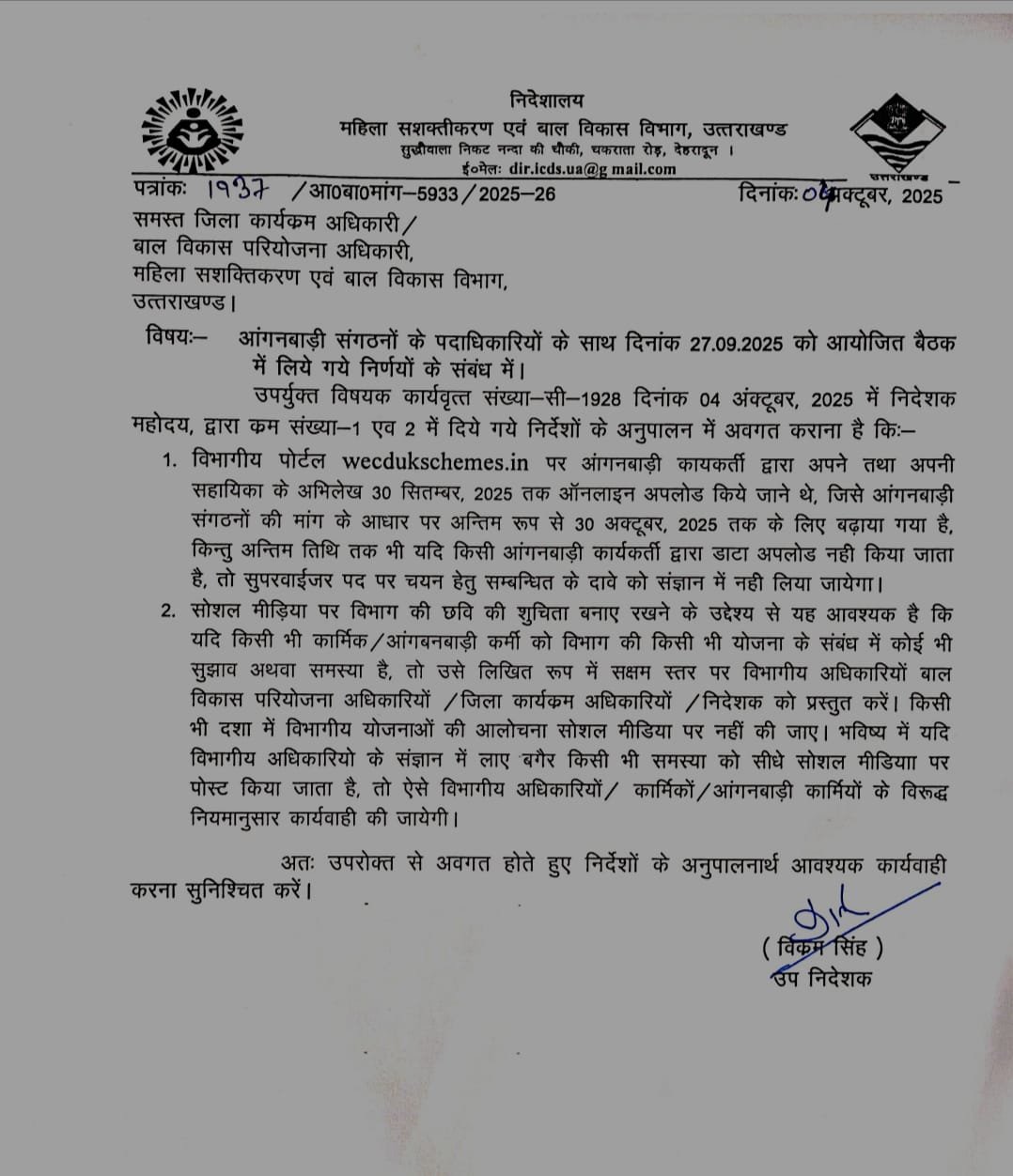 महिला सशक्तिकरण विभाग ने दिए जांच के आदेश
